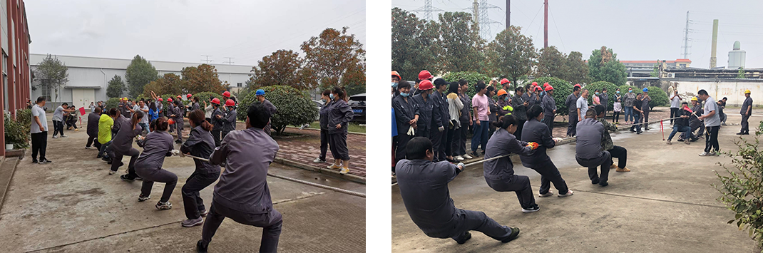 拔河比赛参赛队分别为生产技术部2队,品管部1队,后勤部门1队。随着裁判吹响哨音,每队队员都卯足了劲,拼尽全力拉绳索。参赛双方你争我夺,互不相让,红绳在界限上来回移动,赛况紧张激烈。